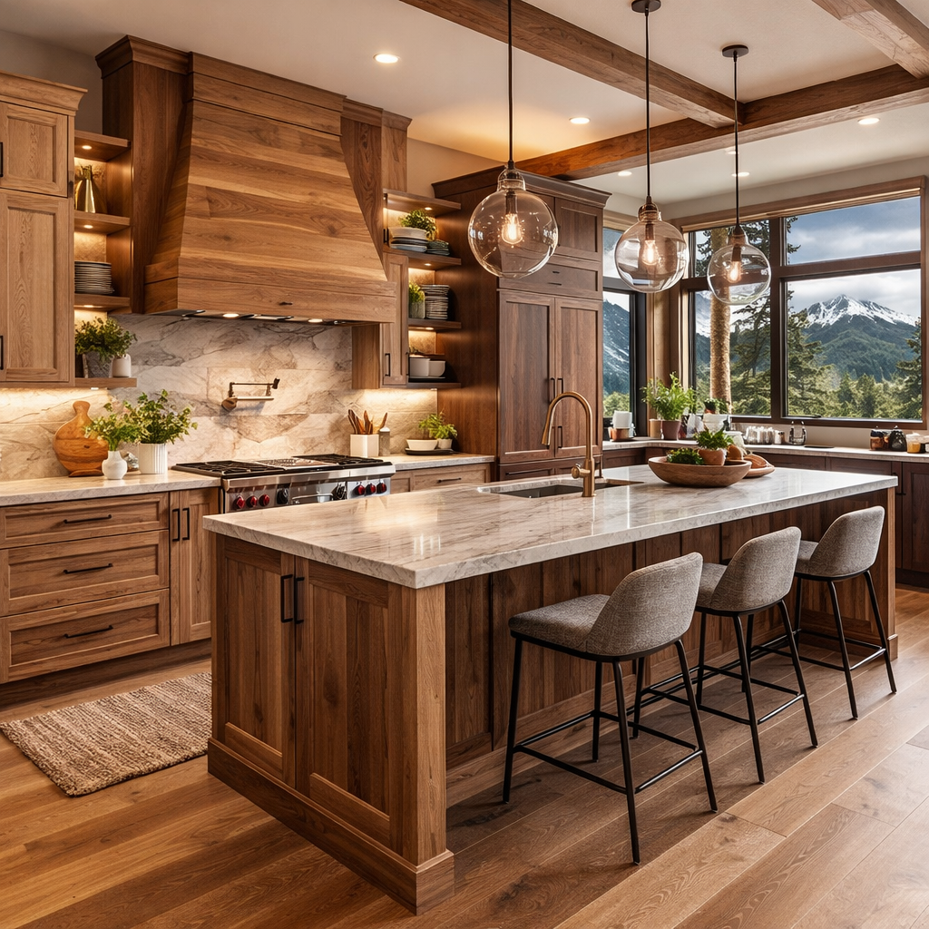 For mountain properties in Breckenridge, wood cabinetry complements alpine architecture and increases perceived luxury.