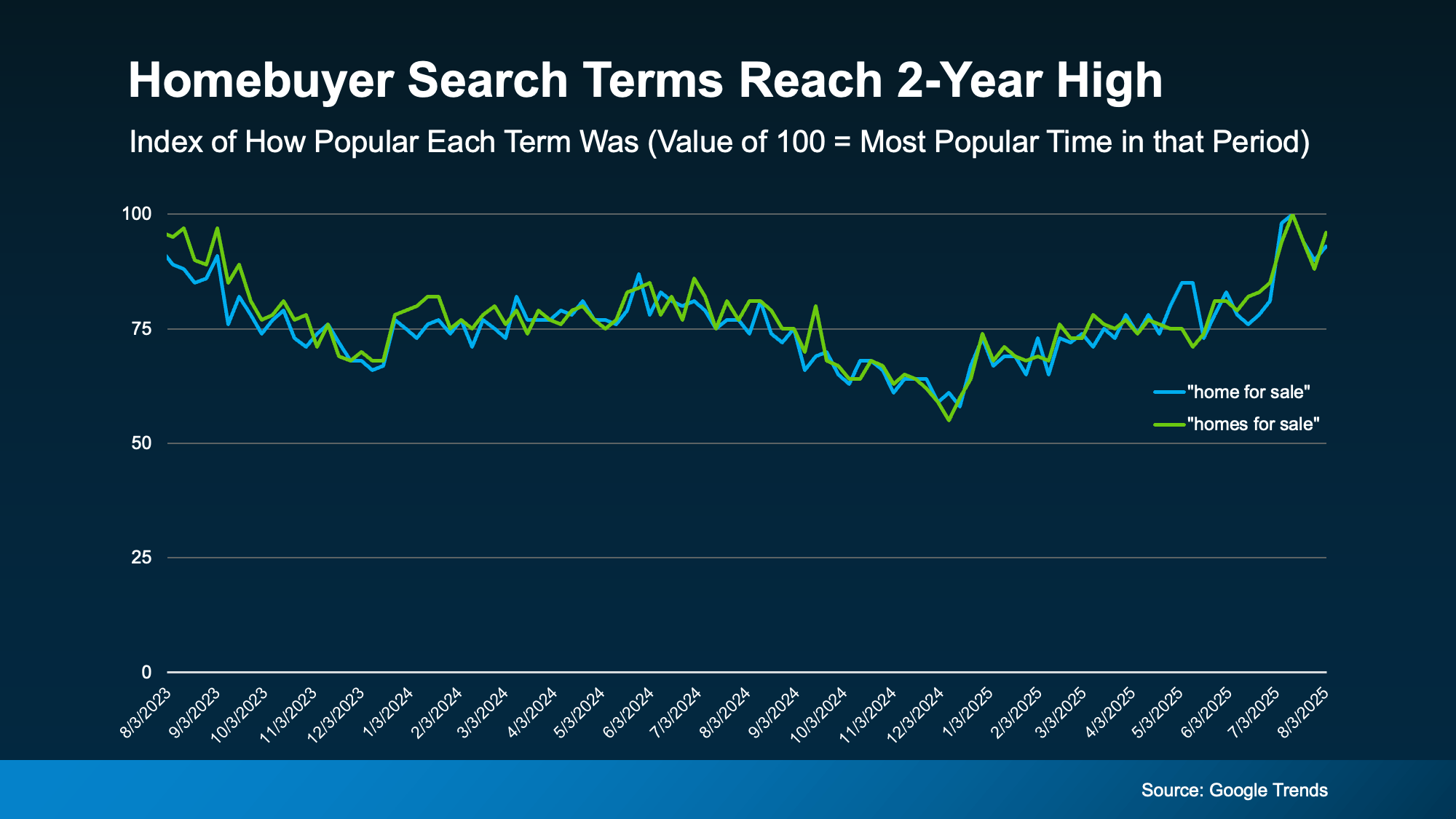 One of the best ways to measure interest is by looking at what people are searching for online — and right now, buyer curiosity is climbing.