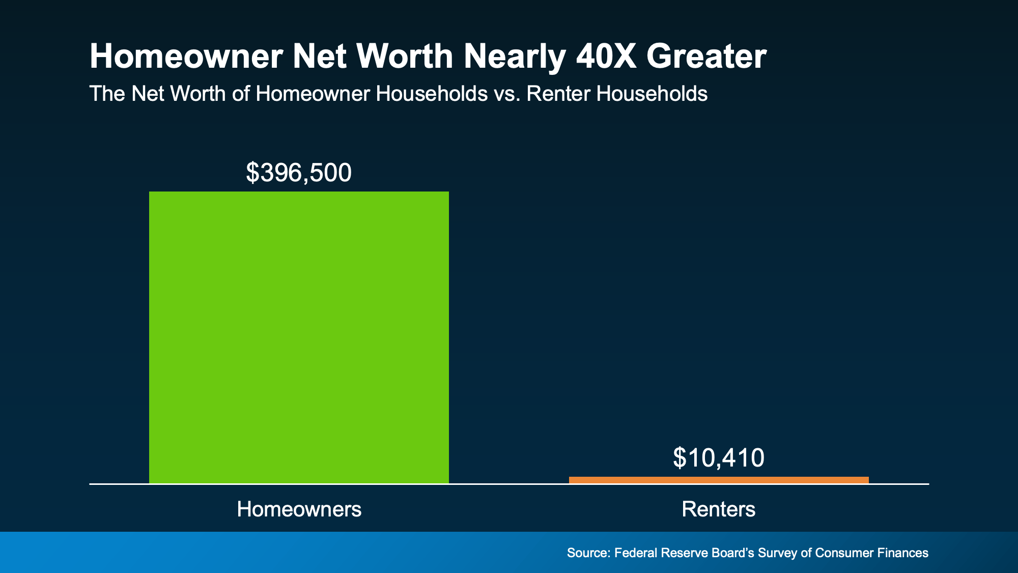 In fact, the average homeowner’s net worth is nearly 40 times greater than that of a renter. That’s not just a number; it’s life-changing.