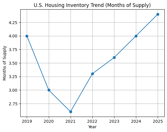 U.S. housing inventory has steadily increased since 2021, restoring buyer leverage without triggering a market crash. Source: National Association of Realtors.